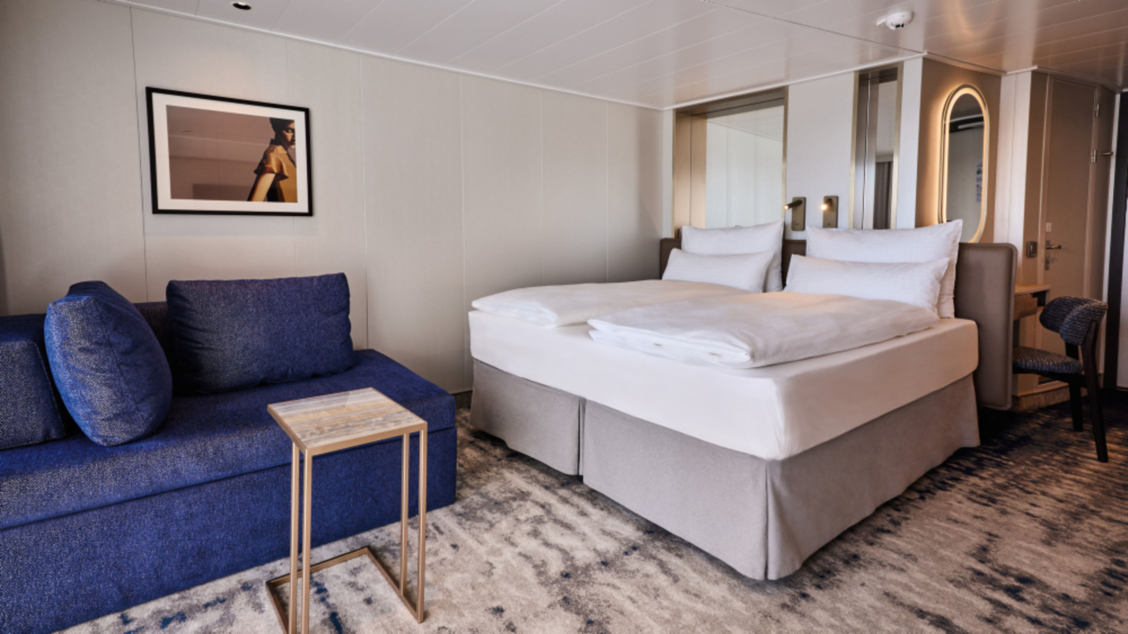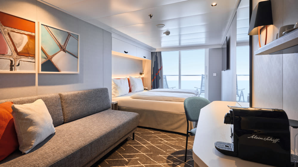 Einzelkabinen Balkon | Deck 11Neben den Innen- und Außenkabine für Alleinreisende, bietet die Mein Schiff Relax nun auch Balkonkabinen für Alleinreisende. Ein Highlight dieser Kabinen: Direkt vom Bett aus können die Gäste den Blick aufs Meer genießen. Mehr Freiraum geht nicht.