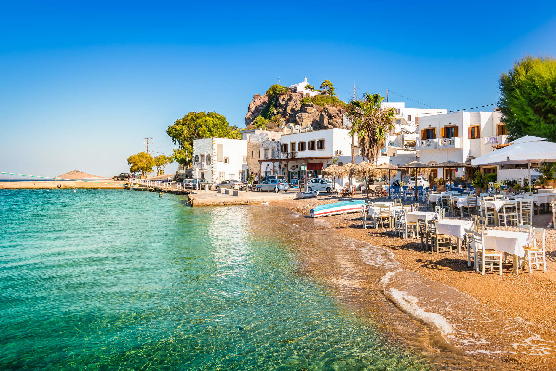 Der Hafen von Patmos, gelegen in Skala, ist das lebendige Zentrum der charmanten griechischen Insel in der Ägäis. Als Tor zur „Heiligen Insel“ bietet der Hafen eine malerische Kulisse mit weiß getünchten Häusern, traditionellen Fischerbooten und einer entspannten Atmosphäre. Von hier aus haben Besucher einfachen Zugang zum imposanten Kloster von Patmos und zur Höhle der Apokalypse, die für ihre spirituelle und historische Bedeutung bekannt sind. Die idyllischen Strände und die authentischen Dörfer der Insel sind nur eine kurze Fahrt entfernt und laden dazu ein, die natürliche Schönheit und das authentische Leben der Insel zu entdecken. Der Hafen von Patmos vereint Geschichte, Kultur und Erholung in perfekter Harmonie.