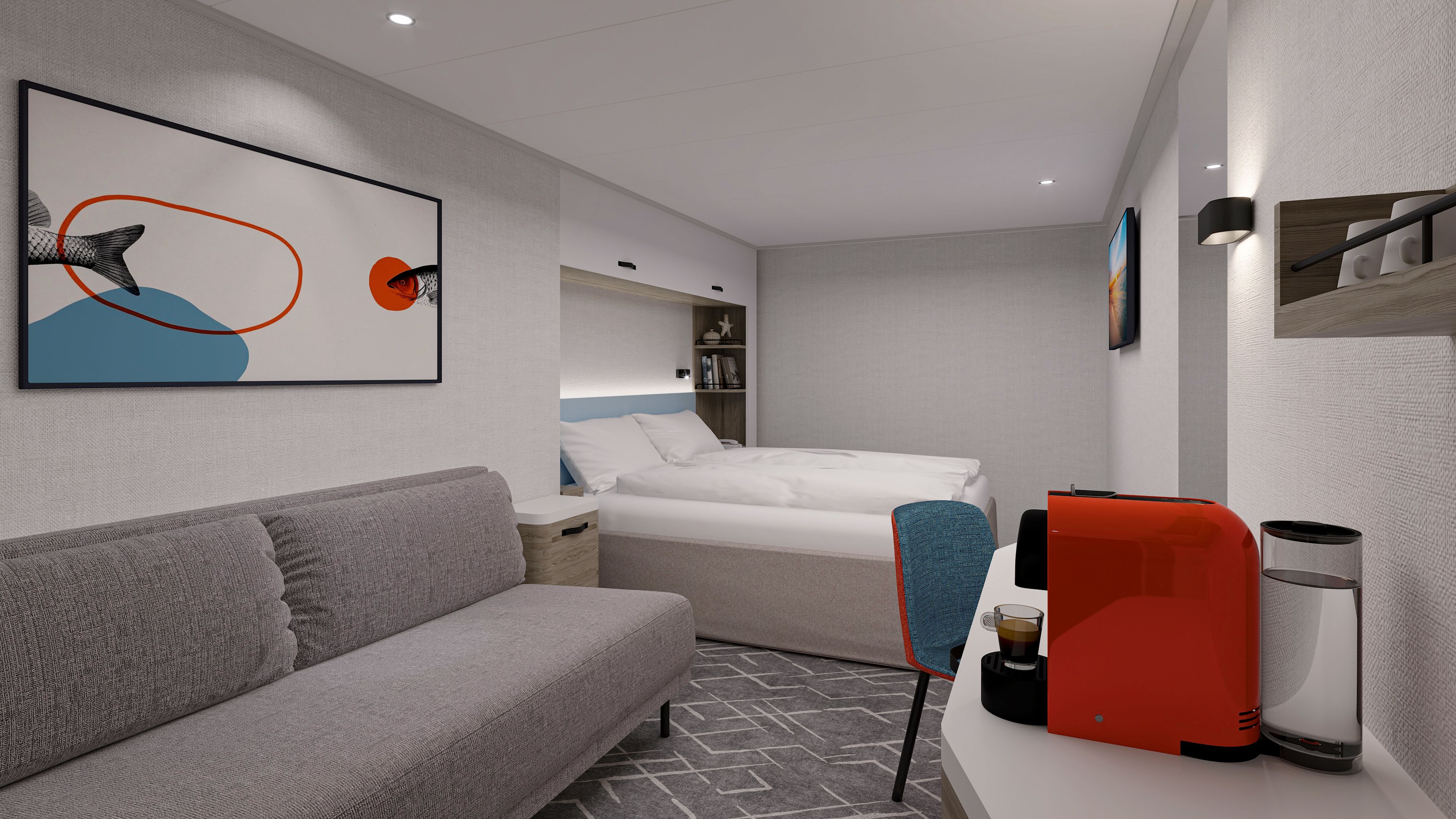 Unsere Innenkabinen bieten bis zu 4 Personen viel Platz zum Wohlfühlen. Starten Sie am Morgen mit einem Kaffee aus der Espresso-Maschine.