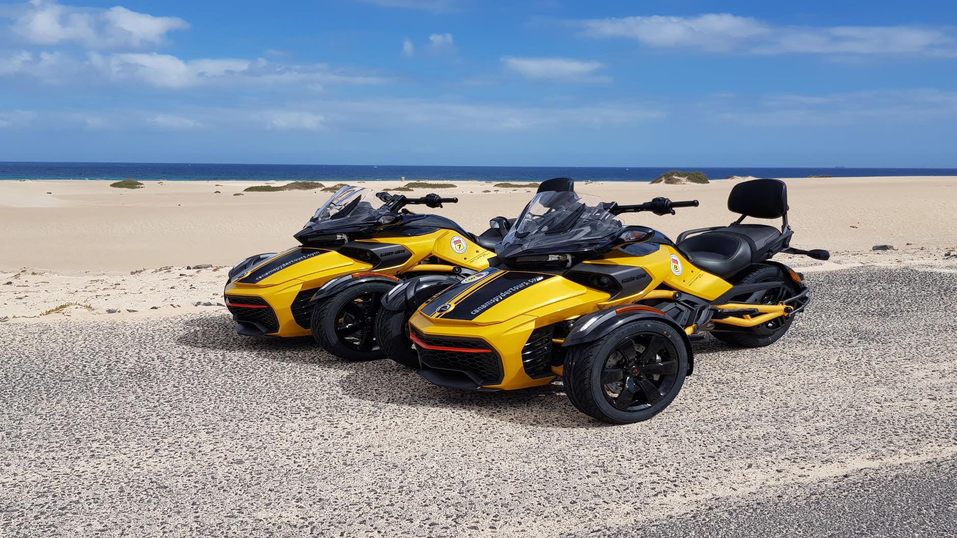 Auf 3 Rädern flitzen Sie in einem Spyder, einer Mischung aus Auto und Motorrad, über die karge Kanareninsel. Lassen Sie sich den Wind um die Nase wehen und erleben Sie ein völlig neues Kurvengefühl, während Ihr Beifahrer die Aussicht genießt. Oder wollen Sie die Tour lieber entspannt erleben und sich fahren lassen? Egal für welchen Platz Sie sich entscheiden, aus dieser Perspektive haben Sie die Insel wahrscheinlich noch nicht kennengelernt. Der Ausflug, kurz zusammengefasst: · Ausführliche Sicherheitseinweisung · Rund 2-stündige Tour mit Start am Hafen · Unterwegs: verschiedene Fotostopps mit tollen Ausblicken · Ca. 30 Minuten Zeit zur freien Verfügung in El Cotillo