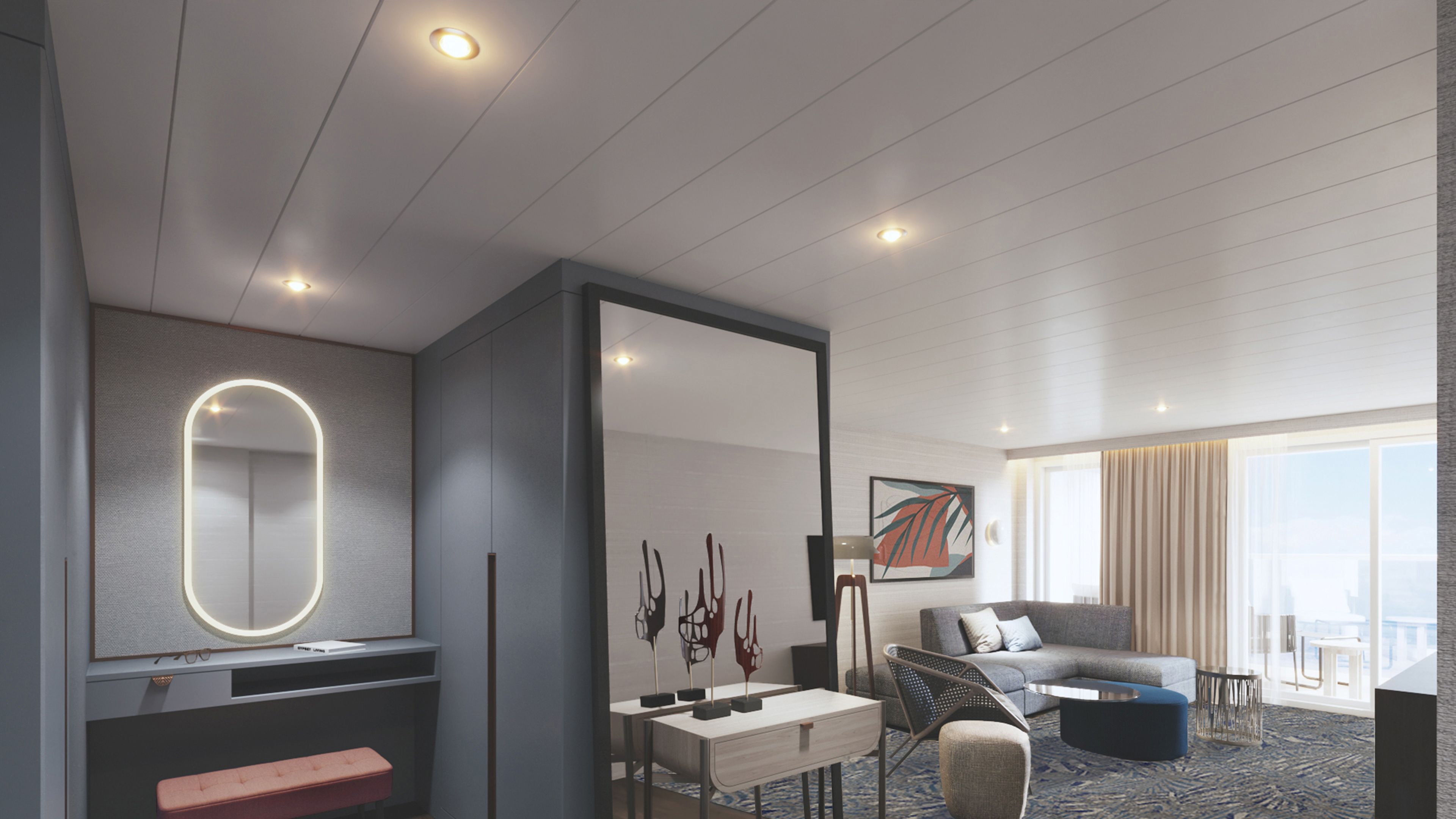 Get a picture of your Veranda Cabin on the Mein Schiff Relax in advance. The layout and furnishings of the cabins and bathrooms can differ in individual cases.